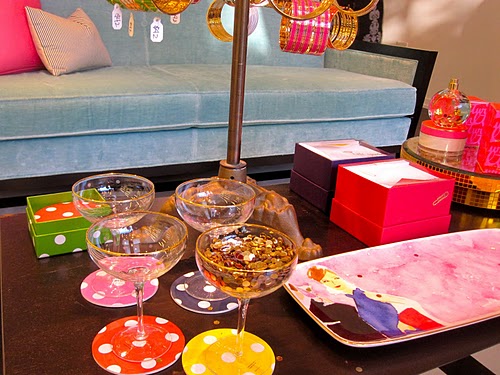 I was reading Alaina’s blog, Live Creating Yourself, and she was talking about the Rue Magazine West Coast launch party at Kate Spade in Corte Madera. She took these pictures at that party and I fell in love with the Kate Spade polka-dot coasters. I went there a couple days later and purchased the actual set in the picture (since that was their last set). They were only $20 and then I got an additional 25% off with friends and family. They don’t carry the set from the first picture online anymore, but they are selling the gold polka-dot ones. I think that they are a nice way to add a splash of color and fun to your dinner parties for $20!